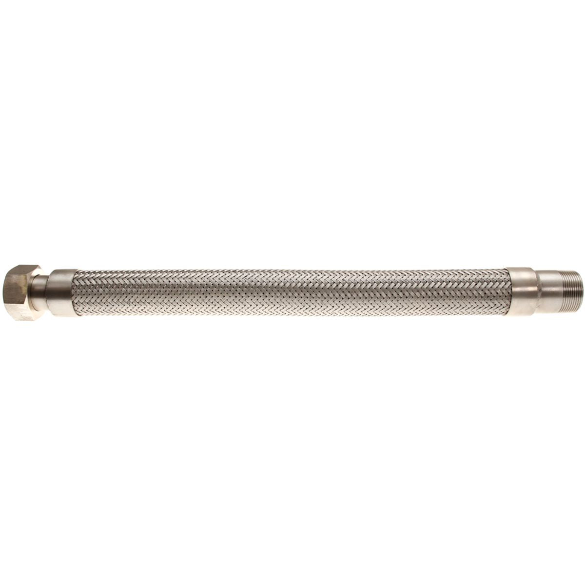 Stainless braided male to female flexible exhaust.