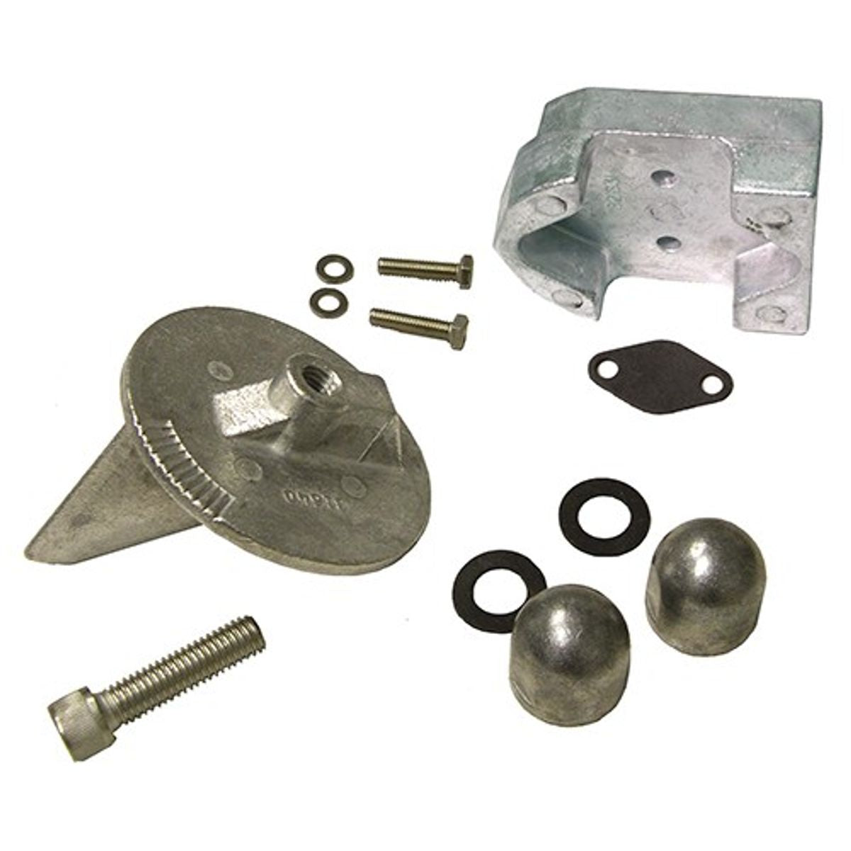 Performance Metals Navalloy® complete kit of aluminium anodes and hardware for 1984-1990 Mercruiser Alpha 1 Gen I and MR Outdrives. This kit is provided with a fin trim tab to assist with steering. The anodes include the exclusive, patented "red spot" wear indicator. Replaces Mercury 888756Q02.