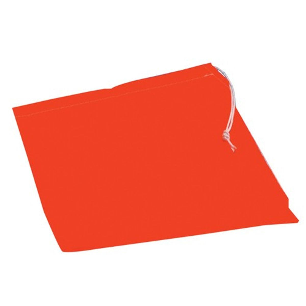 Orange PVC propeller bag with a draw string at the neck. To comply