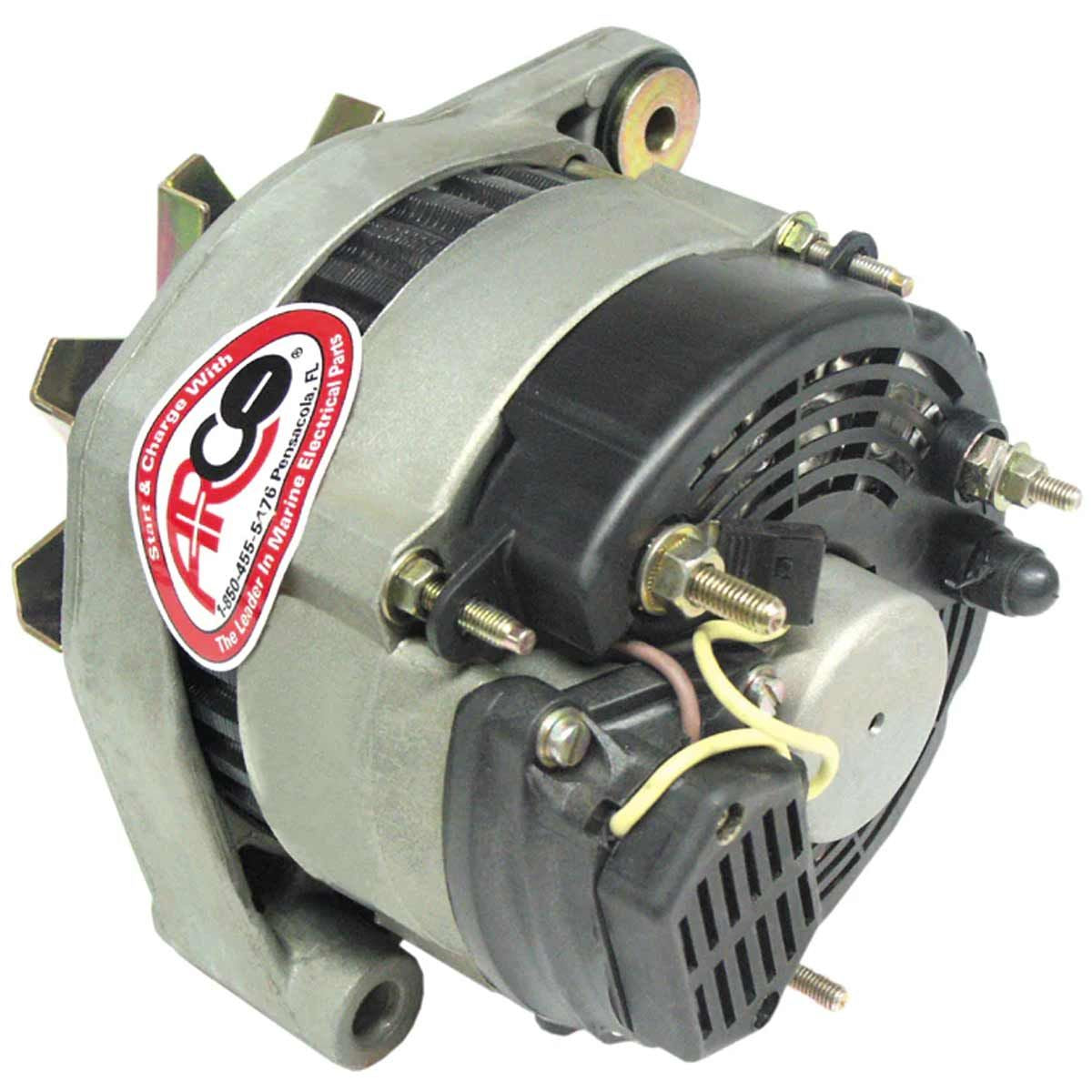 Arco 80108 OEM Premium Replacement Alternator fits late model Volvo Penta marine diesel engines. The engine alternator is rated 12 volt and 55 amps, featuring an internal regulator and 2" mounting foot.