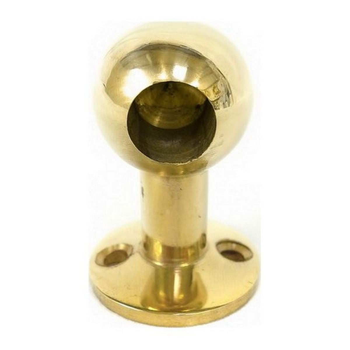 Brass ball post short end with 2 fixing holes for counter sunk screws. Dimensions: 1" OD x 3/8" ID x 1.1/2" H.