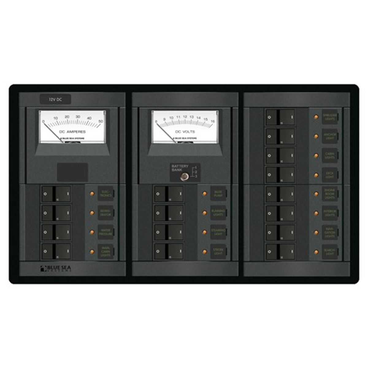 Blue Sea 360 DC Circuit Breaker Panel 16 Position with 2 Meters
