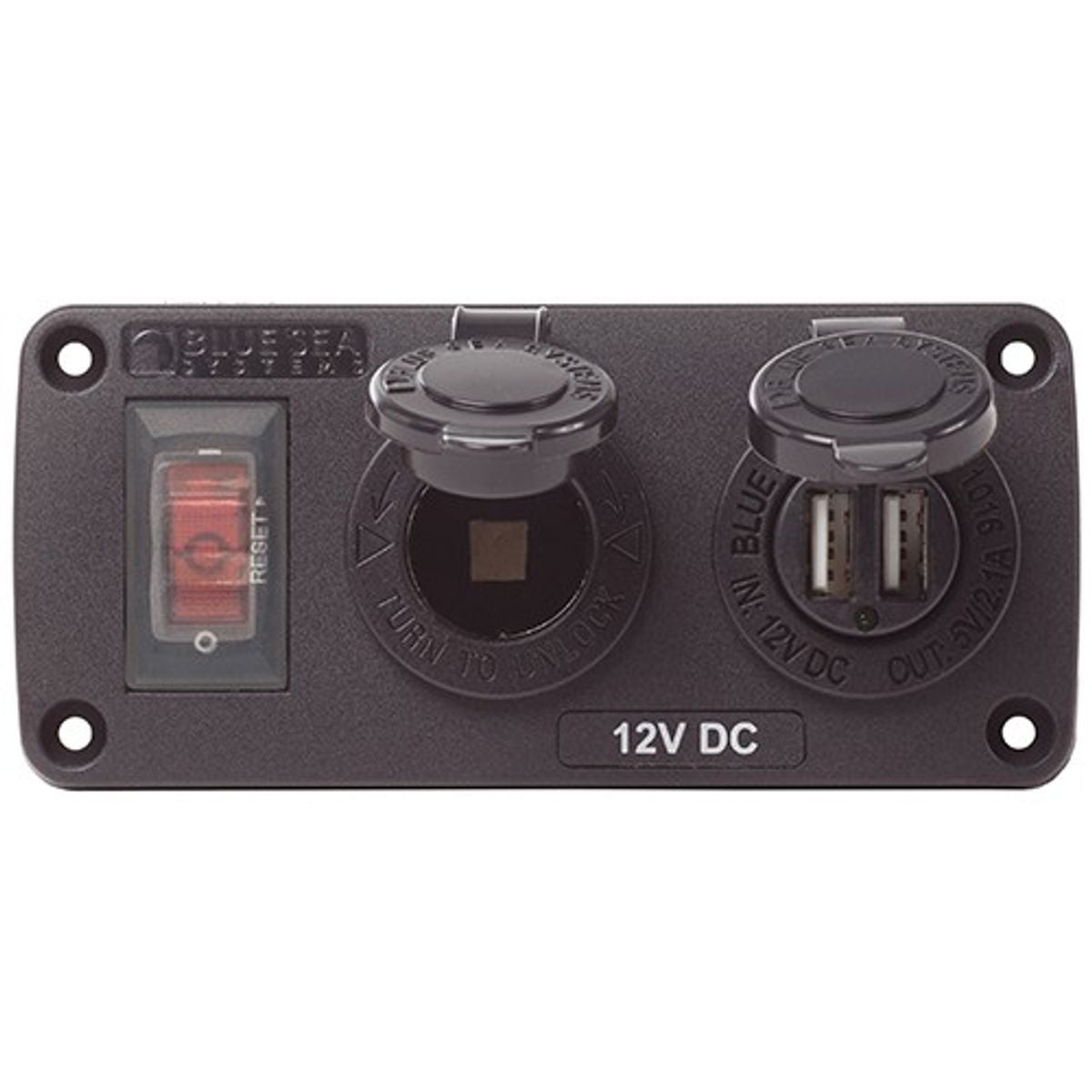 Blue Sea Accessory Panel 15A CB+ USB Socket + 12V Socket