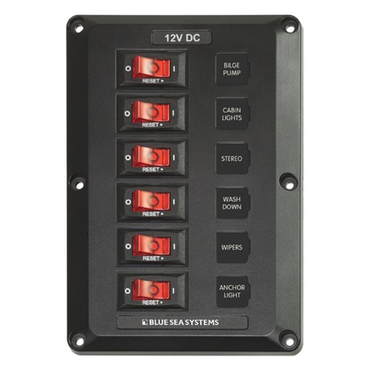 Blue Sea Panel Below Deck 12V DC Circuit Breaker 6 Position