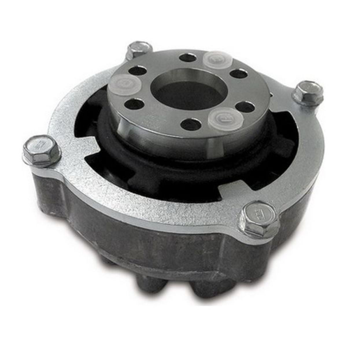 The large volume, highly elastic, encased element absorbs torsional shocks and stress without excessive deformation.