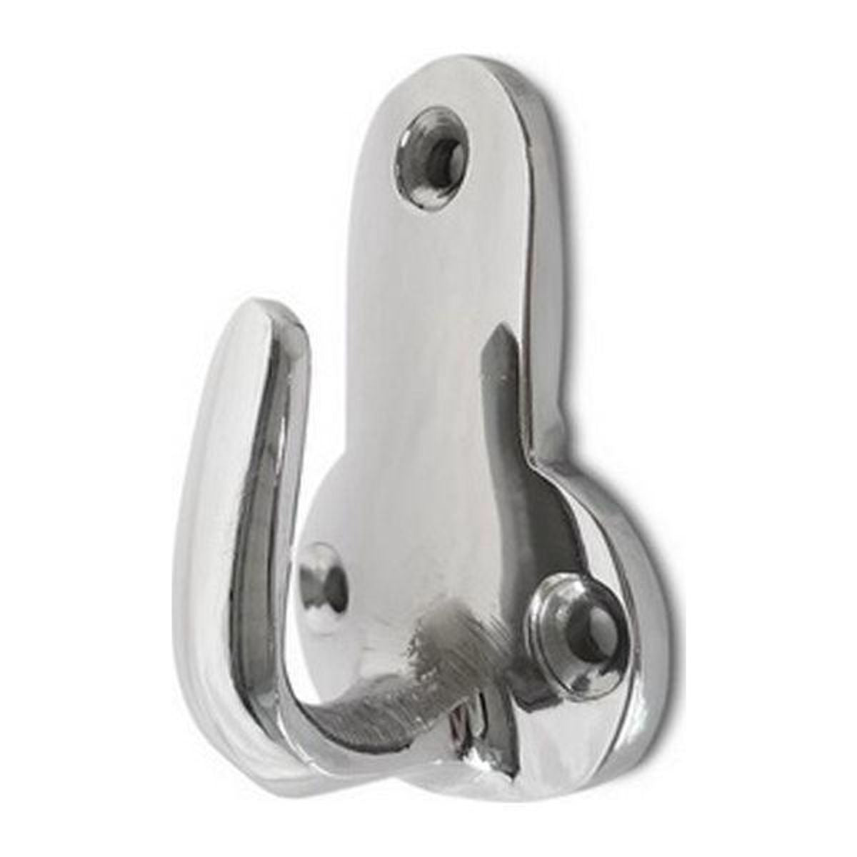 Chrome chimney/coat hook with 3 fixing holes to suit countersunk screws. Dimensions: 1" wide x 1 7/8" high.