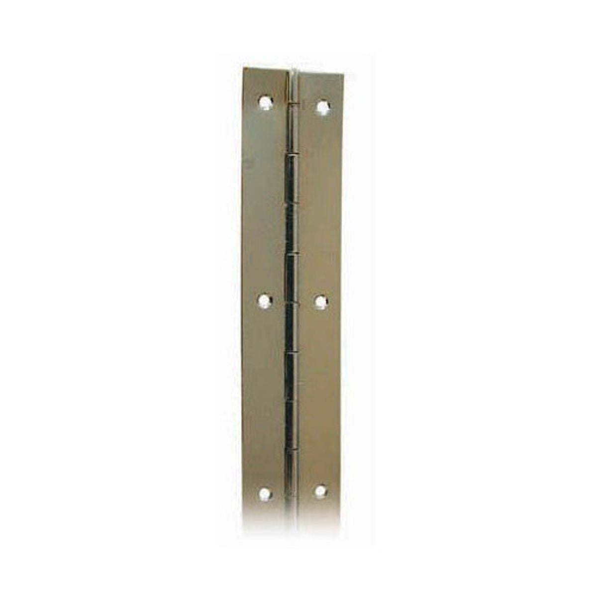 The 1.2mm (0.048", 18 gauge) hinge leaf thickness is the lightest within the group of medium duty continuous hinges. Major advantages of this group of products over the light duty range are the increased firmness of the hinge itself, adding rigidity to the structure to which it is attached and the ability to take larger fixing screws.