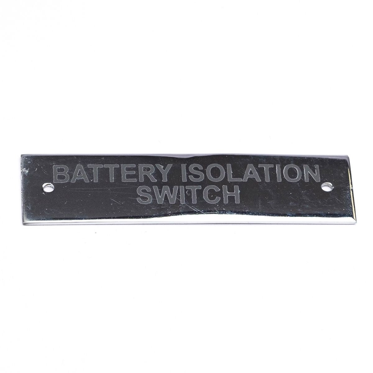 AG SP Battery Isolation Switch Label Chrome 75 x 19mm Packaged