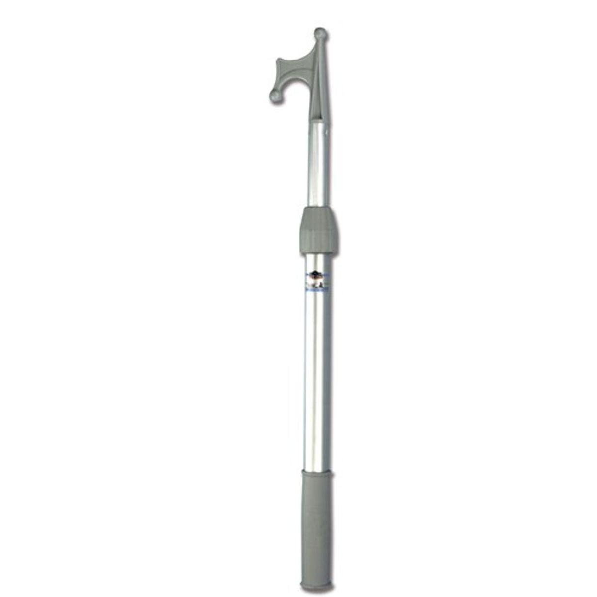 Extending boat pole and hook in silver anodised aluminium with rubber grip and nylon hook. 25mm diam. 2 telescopic sections adjust from 1.2m to 2.1m long.