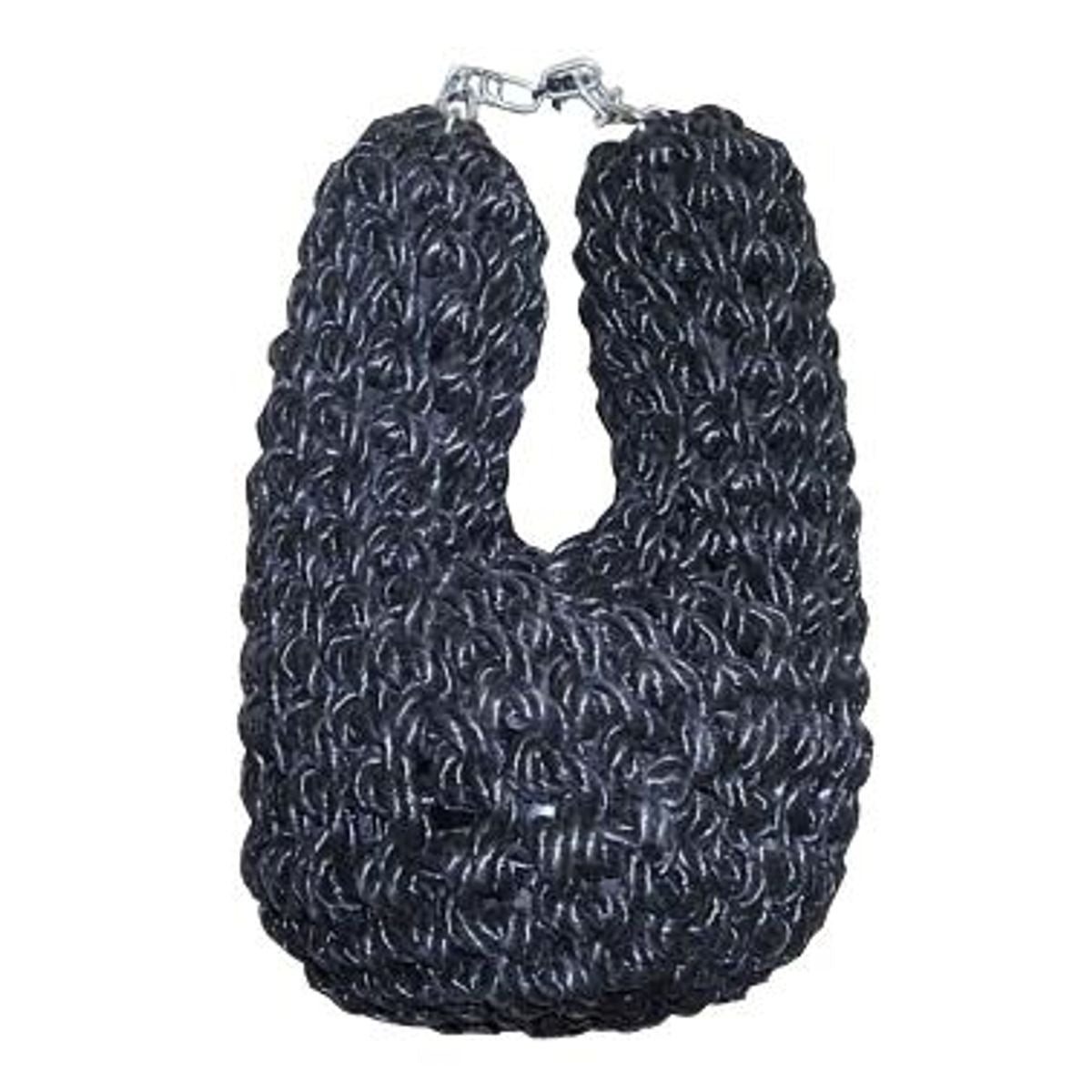 Made from black polypropylene rope woven around a solid rubber core (guaranteed not to degrade over time) complete with chain fittings. These fenders are meant to be attached to the bow of a canal boat attached by the 4 chain fittings that are interlocked and moulded right through the solid rubber core.