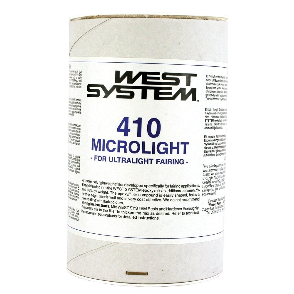 This low density filler is ideal for creating a lightweight, easily worked fairing compound, especially suited for large areas. Microlight holds a fantastic feather edge and is the easiest filler throughout the West System range to fair. Add between 7% to 16% by weight to mixed epoxy. Colour: Tan